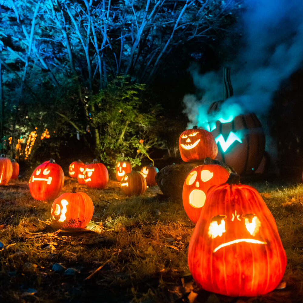 Over 10,000 hand-carved pumpkins & themed displays (dinosaurs, mythical creatures, pop culture icons, Halloween classics)