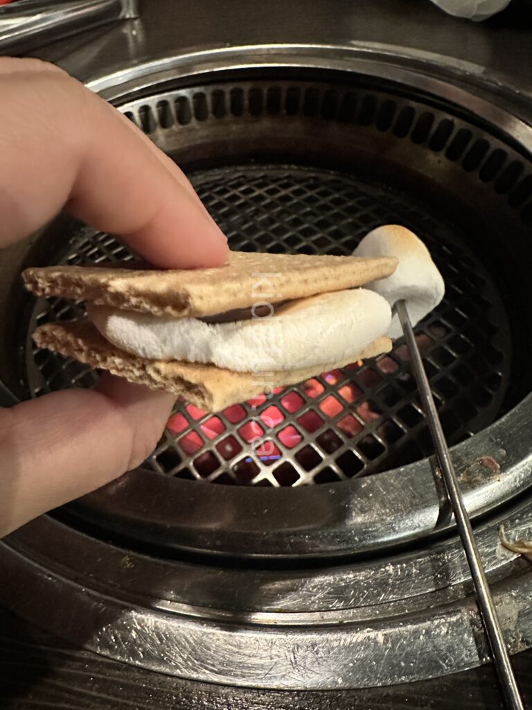 They bring out marshmallows, chocolate, and graham crackers so kids can roast their own marshmallows right at the table. It’s gooey, fun, and always ends with a smile (and sticky fingers).